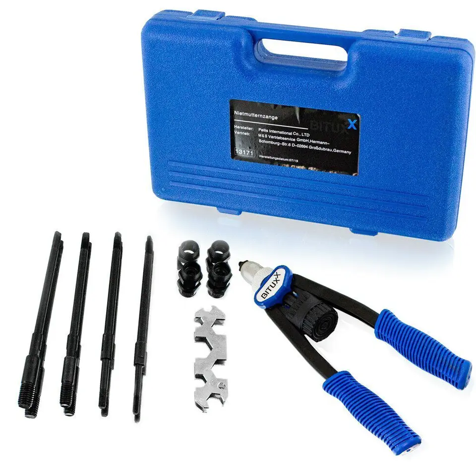 HAND RIVETER FOR RIVET NUTS IN A PRACTICAL CASE