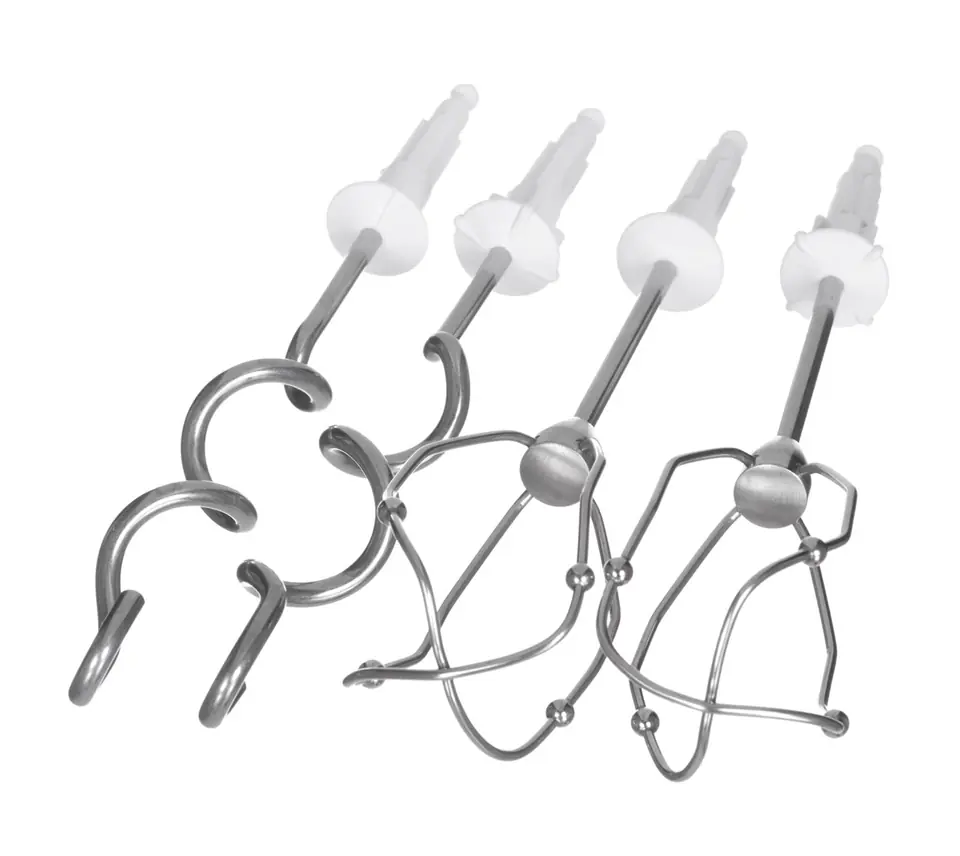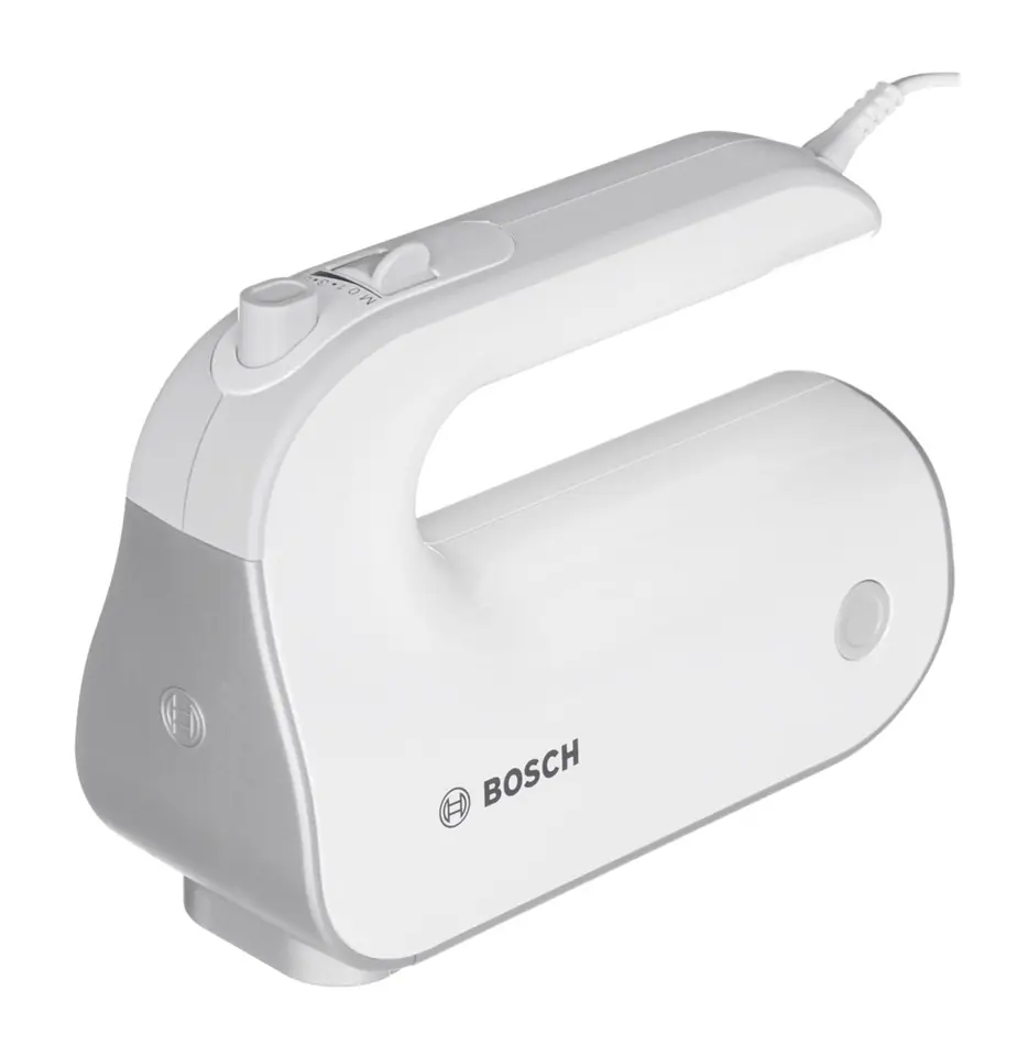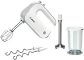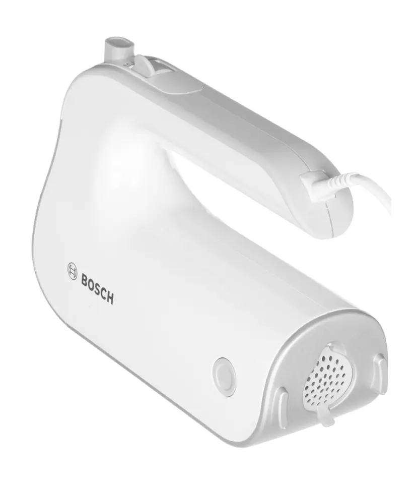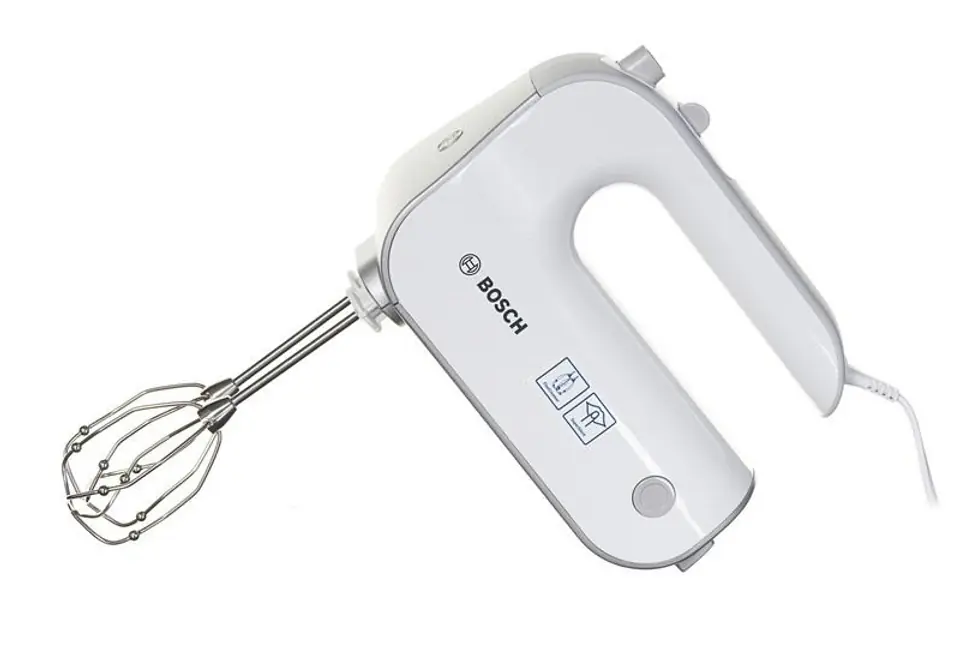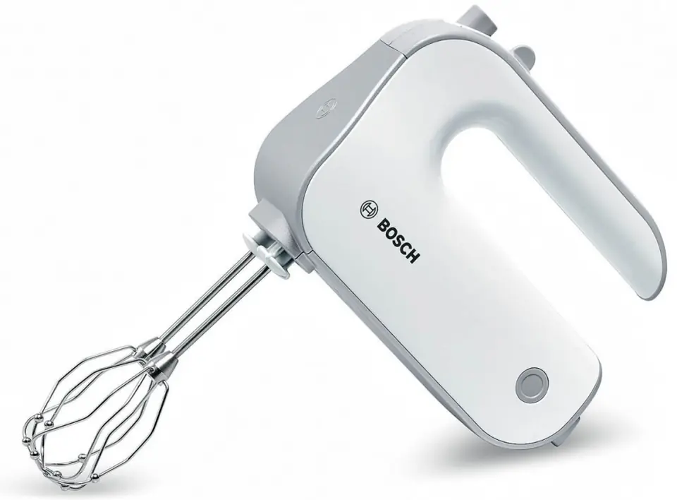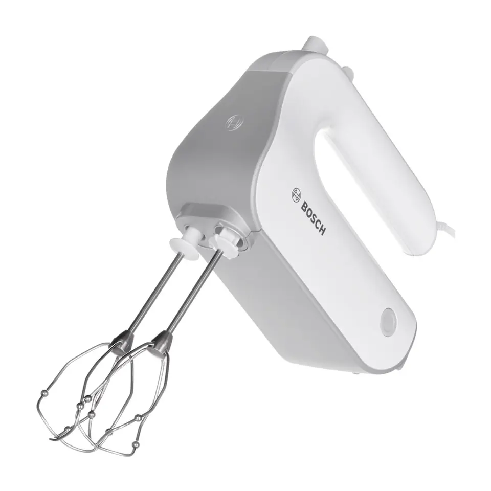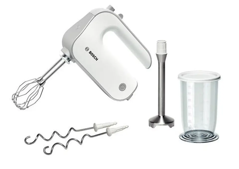 Hand mixer, 500 W, soft handle, 5 speed levels + TURBO function, 2 whipping tips, innovative tip design - better whipping effect, 2 tips for kneading dough, stainless steel mixing foot, container with lid, color: white/grey