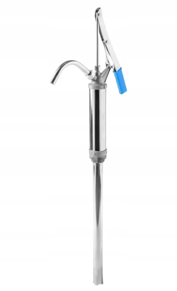 Professional hand pump designed to collect liquid substances stored in drums.