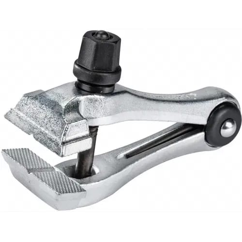 Design: arms made of very durable, chrome-alloy tool steel, with replaceable trapezoidal threaded spindle, secure joint guidance and anti-lost, retractable expansion spring. Jaws with a prismatic notch for fixing round parts, with a large jaw span and a butterfly nut.
