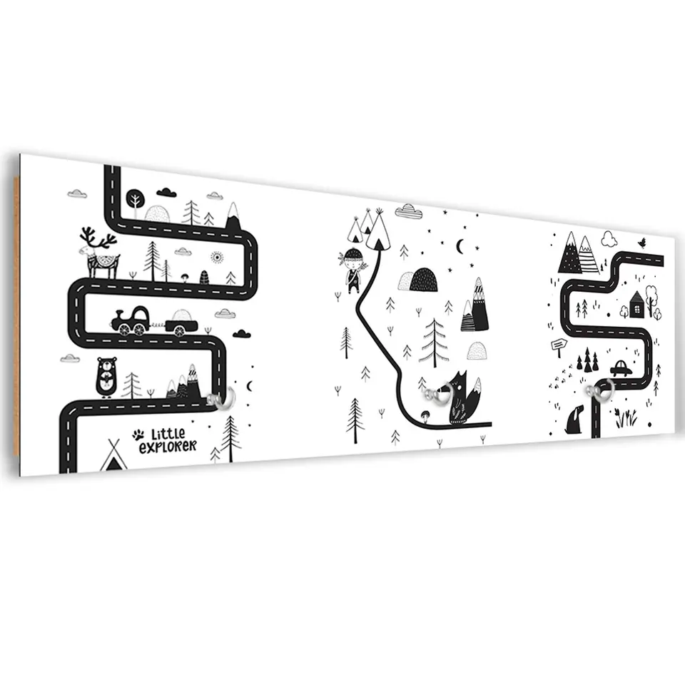 Decorative hanger is a practical and aesthetic decoration of the hallway, hallway, hallway. The decoration was designed in the deco style of the panel. On the back of the graphics board there is an MDF frame with a thickness of 1.5 cm, which creates an interesting visual effect and makes the hanger not directly adjacent to the wall. The graphics are printed on satin paper with a weight of 200 g / m² and glued on an HDF board with a thickness of 3 mm. In printing, we use only safe eco-solvent inks and modern plotters.