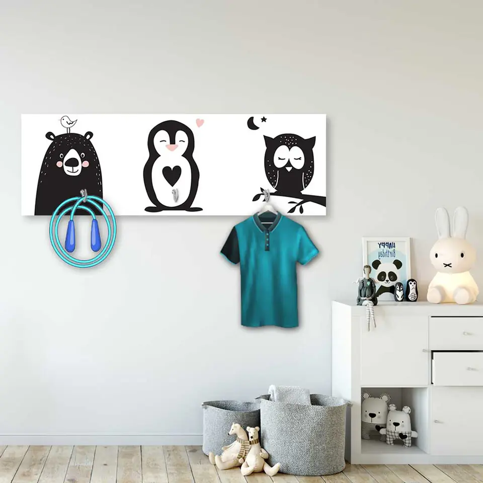 Decorative hanger is a practical and aesthetic decoration of the hallway, hallway, hallway. The decoration was designed in the deco style of the panel. On the back of the graphics board there is an MDF frame with a thickness of 1.5 cm, which creates an interesting visual effect and makes the hanger not directly adjacent to the wall. The graphics are printed on satin paper with a weight of 200 g / m² and glued on an HDF board with a thickness of 3 mm. In printing, we use only safe eco-solvent inks and modern plotters.