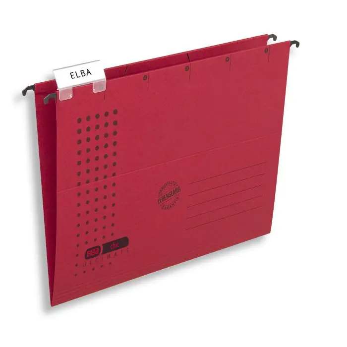 Hanging folders CHIC Elba_- strong cardboard 230 g / m__- each folder equipped with a signboard with a replaceable label opisową_- capacity up to 330 sheets A4_- canvas sides preventing documents from sliding out of the folder 85443 and 85743_- size 24,0 x 31,8 cm_- package - 25 sztuk_- sales unit 1package