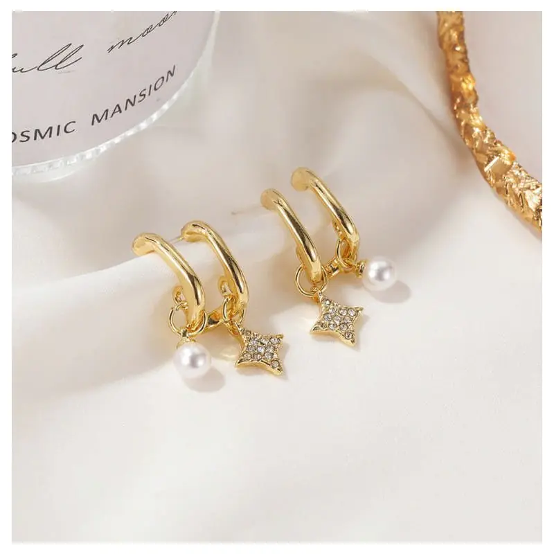 Double hanging earrings decorated with stylish crystals and pearls