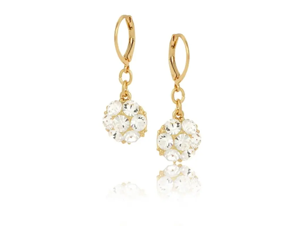 Feminine and elegant earrings with Swarovski crystals fit perfectly with dresses, overalls and suits. Earring length 2,5cm. The diameter of the hanging element is 1.3cm. Gold-plated earrings.