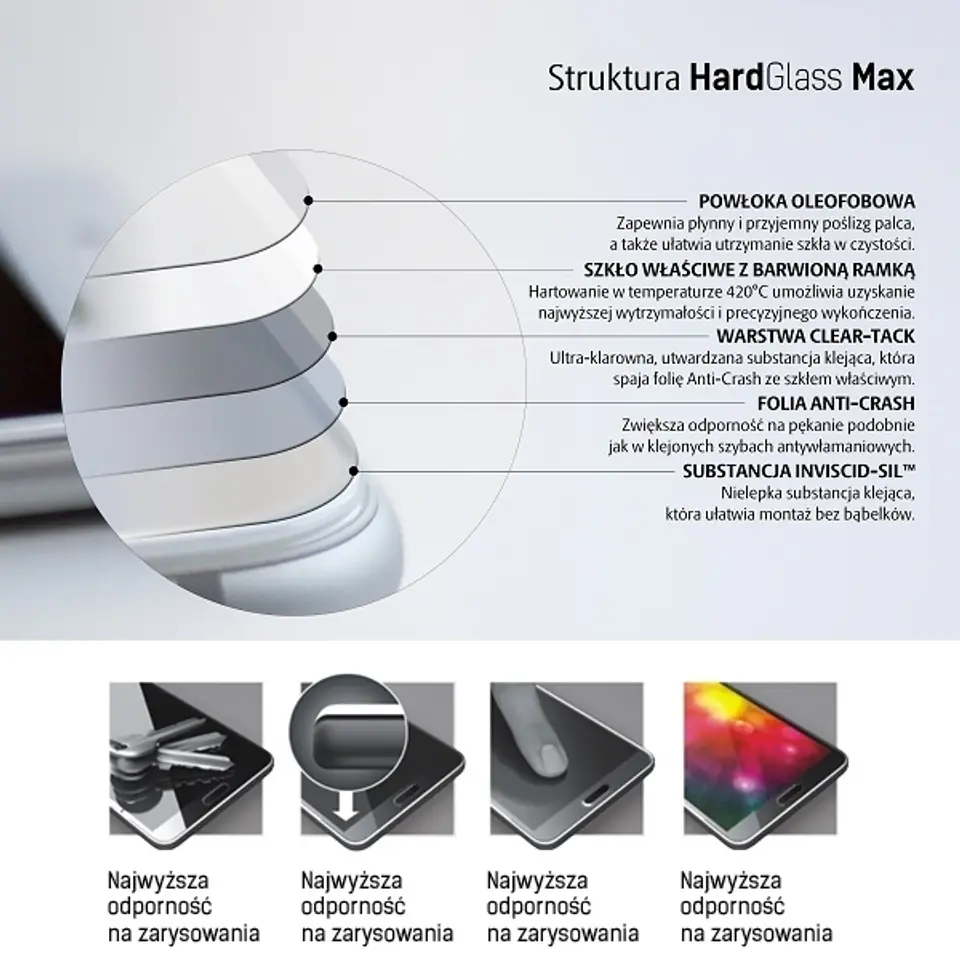 Contoured tempered glass protecting the rounded display from edge to edge. Has a hardness of 9H. Thanks to this, even sharp tool steel objects cease to be a threat. Glass is subjected to its strengthening for many hours at a temperature of up to 420 ° C.