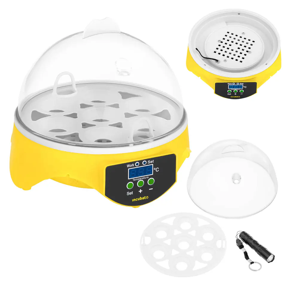 Incubato 10130000maximum 7 egg, quail, goose or duck power 20 Energy-saving in the range of 20 - 50Cintelligent control system efficient fan transparent dome professional control panelIPX4 protection degreesas easy to cleanthe possibility of disassembling partsProduct features: