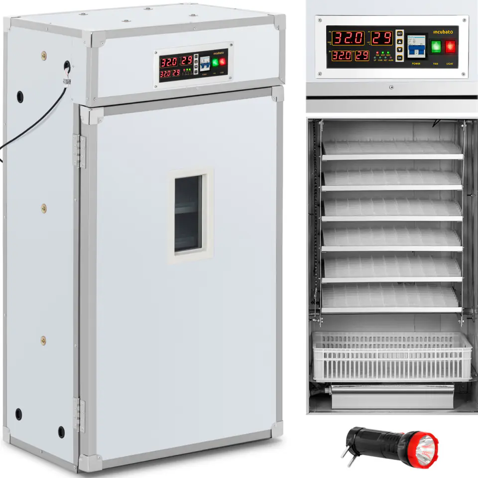 Manufacturer's code: 10130020Inubato brand incubator will work well for hatching bird eggs. It was created for professional use, e.g. in the breeding industry. It can hold up to 528 chicken eggs, set on six trays and in a basket. The device can also be adapted to eggs of other species by purchasing dedicated trays.