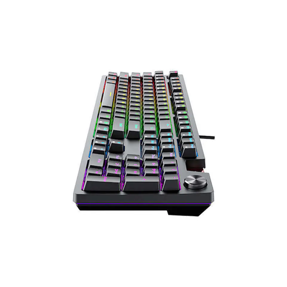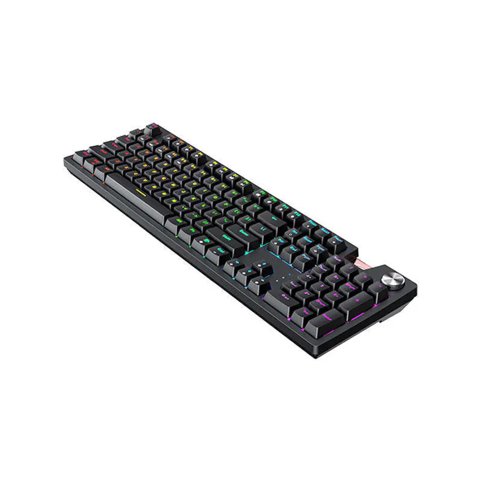 The Havit KB862L mechanical gaming keyboard will meet the expectations of even the most demanding users. It is equipped with 104 keys, and thanks to the included overlay, you can better adapt it to your needs. Blue switches ensure smooth, reliable performance, while RGB lighting gives your gaming device a gaming feel.
