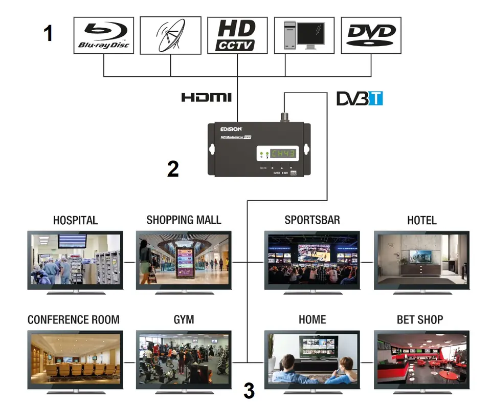 - Single digital HDMI modulator for DVB-T/MPEG4