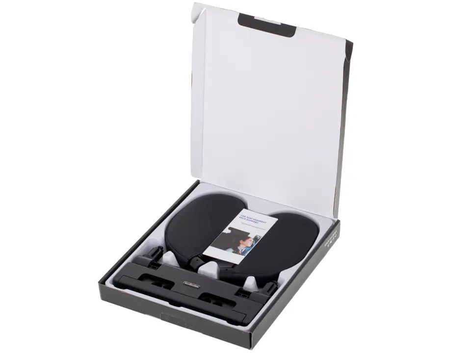 Simple, fast and extremely intuitive installation. It must be attached to the bars of the car headrest. To do this, you need to unscrew the rear screws in the headrest and choose the exact size of the rod cover. A well-chosen cover will stabilize the headrest and ensure that it does not move sideways while driving. Apply the headrest to the bars and screw the rear cover. You can install it on the front and rear seats one condition is that the headrest can not be permanently fused with the seat.