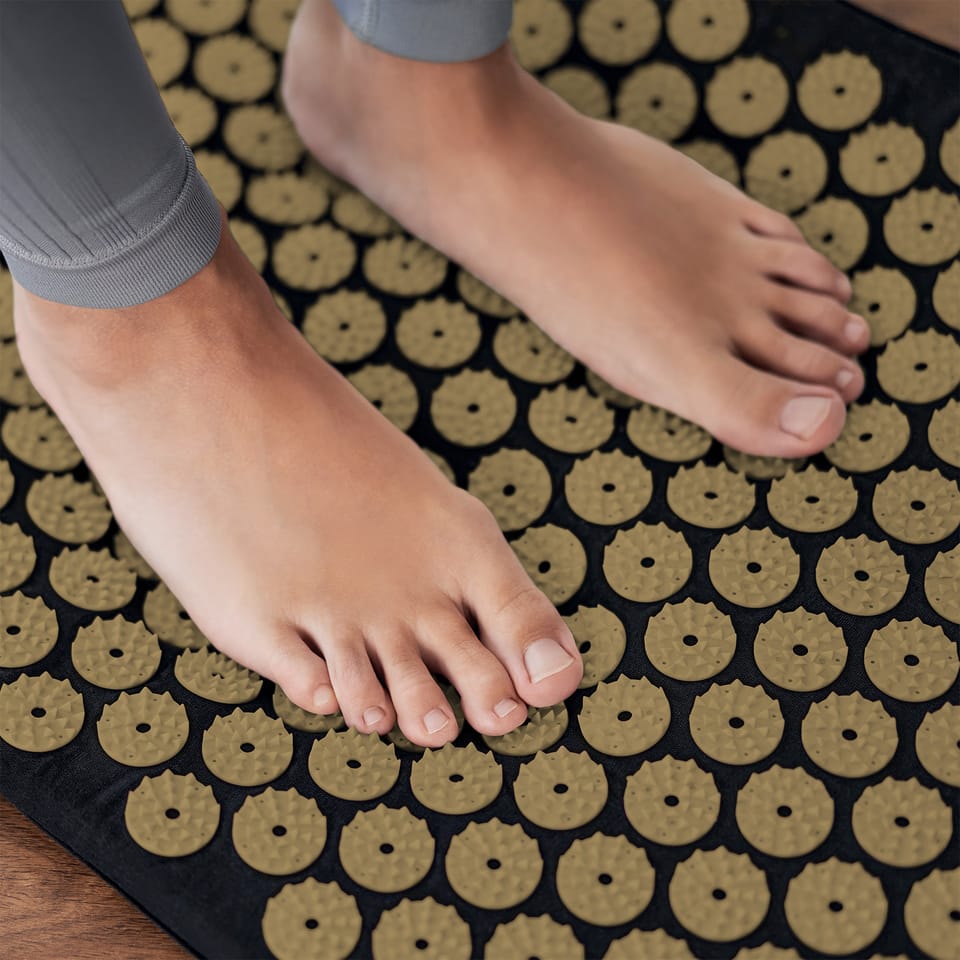 Health mat with acupressure spikes with pillow, 130x50cm, gold spikes, Rebel Active