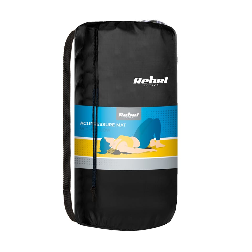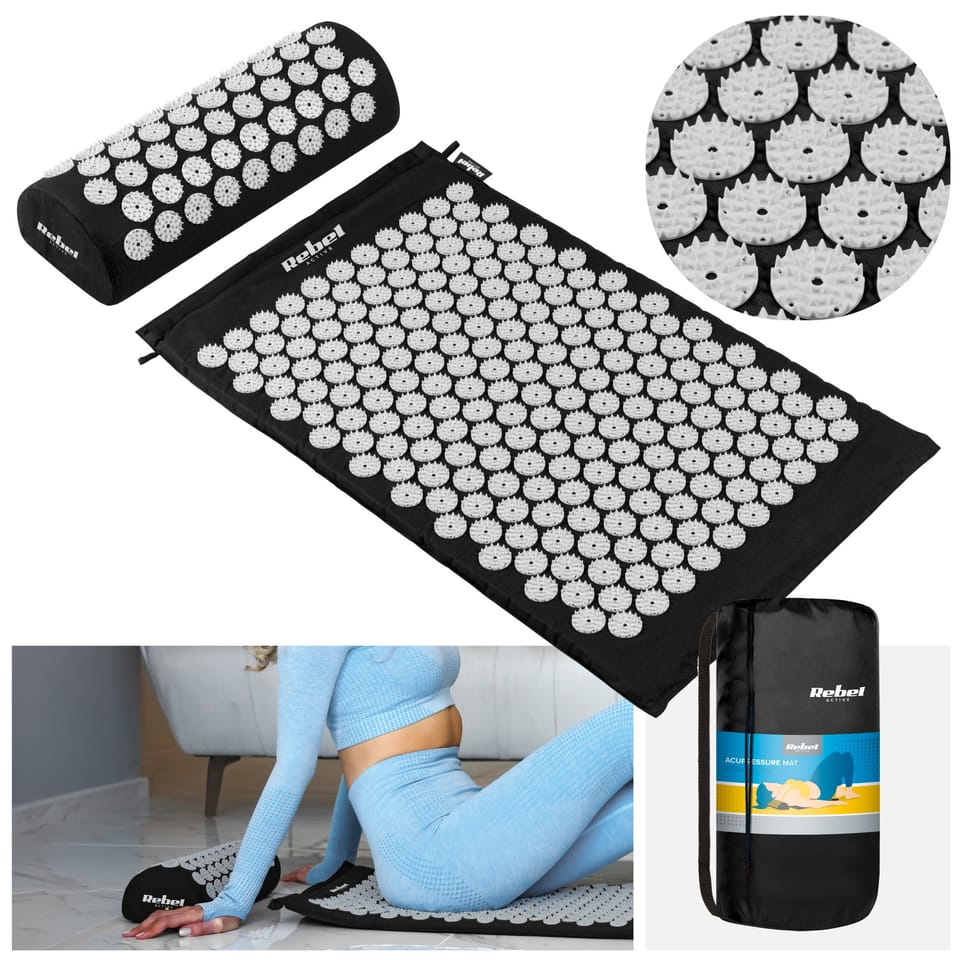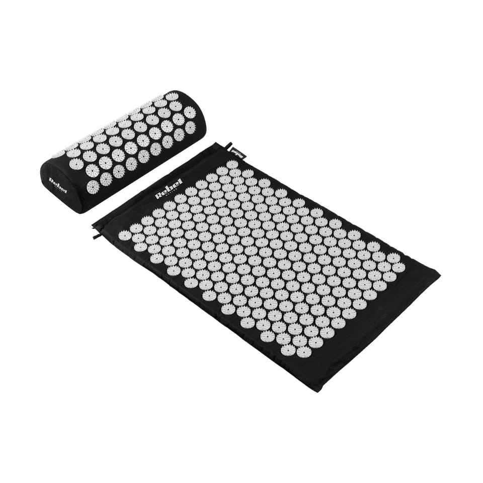 Health mat with spikes for acupressure with pillow, 72x42cm, black, Rebel Active