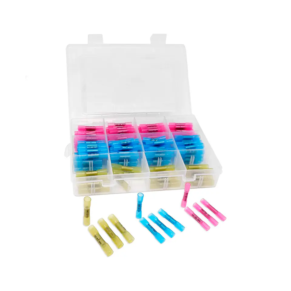 A set of 200 pieces of heat-shrinkable quick connectorsScurrent connector with sleeve is irreplaceable when we want to firmly and securely connect or repair the wires. In the heat shrink tube there is a connection sleeve that must be squeezed with a crimping machine or pliers. After connecting the wires, no additional insulation is required. Set includes:90 quick-jumper range: 0.5~1mm290 quick-release with range: 1.5~2.5mm220 quick-jumper range: 4~6mm2 Technical data:- Operating temperature: -55°C~125°C- Shrinkage temperature: above 150°C- Shrinkage degree: 3:1