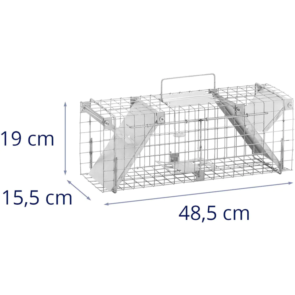 The Wiesenfield hedge allows you to catch harmful or unwanted animals without harming them. It will work for martens, rats and other smaller animals. The total size of the leg is 500 x 200 x 170 mm and the mesh size is 25 x 25 mm. The sensitive locking mechanism reliably reacts to any movement. The set includes meat tongs, hooks, foil gloves for safe setting up and preparation of the trap. Caught animals should be released in uninhabited areas. The trap has a carrying handle with a cover to protect the hand. The device is made of galvanized steel, is resistant to rust and extremely durable.