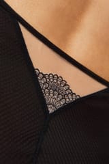 Eleganckie wysokie figi delikatnie modelują talię i brzuch. Uszyte z tiulu, dzianiny oraz haftu.