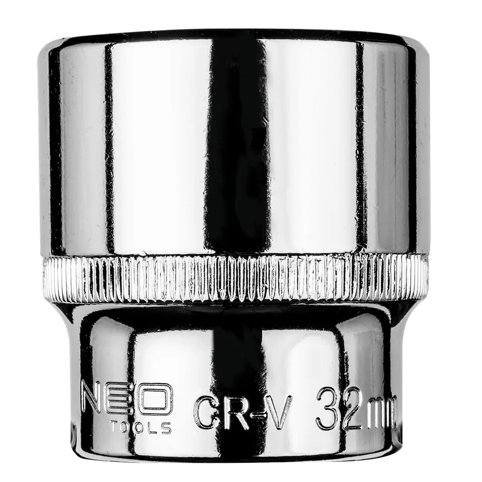 Hexagonal socket 1/2" 32 mm NEO (Ref. 08-432) made of durable chrome-vanadium steel. The knurled surface improves the grip of the cap. The quality of the tool is confirmed by a 25-year manufacturer's warranty. The NEO brand meets the expectations of professionals.