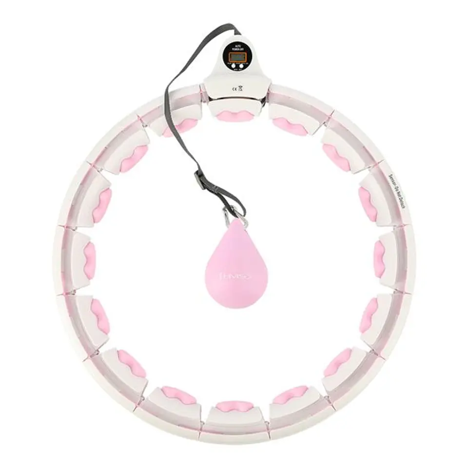 The HHW06 HMS is an adjustable hula-hoop with vibration-absorbing tabs and a fitness gravity ball. It allows simultaneous training and 360-degree waist massage. It is perfect, m.in, for strengthening and firming the muscle corset. Thanks to the circuit adjustment, the HHW01 will never fall off during exercise, so that your home cardio workout can be long and enjoyable, which is a guarantee of even faster and better results! The device is dedicated to both children and adults. How does HHW06 work? The operation of HHW06 is very simple and intuitive. It is a closed loop that has a rail with a gravity ball (load) attached. When performing circular movements with the hips, centrifugal force begins to act, which moves the gravitational ball in a circle, introducing the abdominal muscles and torso into a state of tension. Note: before use, the buckle should be tightly closed Training and massage in one: Through the 360-degree movement, the springs located in the heads located around the entire circumference of the loop perfectly absorb overloads and adapt to the body, which causes an additional massage effect providing the body with a pleasant feeling. Three-dimensional massage technique quickly stimulates the muscles. Built-in tabs with a specially developed design have shock absorption for comfortable training. Dose vibration intensity through rotation speed. Circuit adjustment: Quickly and conveniently reduce or increase the size of the wheel, just remove or plug in as many elements as you need. The HHW06 has a total of 16 elements. The size can be set in the range from 12 to 16 elements, i.e. waist circumference from 75cm to 109cm (loop diameter: 34cm to 45cm). Thanks to this, the device will never fall off during training, so even beginners can use it. Strap adjustment: An additional advantage is the ability to change the length range of the gravity ball belt. It ranges from 20cm to 38cm. The longer the strap, the greater the centrifugal force during exercises, i.e. the greater the weight and the higher the level of difficulty of performing rotations. Comfort of use: The device has a construction made of high quality PVC. The rail is mounted on ball bearings, which are made of stainless steel. All this together makes the rotation flexible and undisturbed, which further intensifies the feeling of satisfaction during training. In addition, the gravity ball is covered with soft rubber, and inside it is filled with sand, thus increasing safety for the practitioner and the environment. Compact size and easy installation: Assembly is carried out with clips. Simply press the clip to pull out or slide in an additional element. Then insert the gravity ball rail into the loop, adjust the length of the belt and you're done. It is important not to pull out the element in which the sensor responsible for providing data is located. Plus, thanks to its compact size, it is easy to carry, you can take this product everywhere with you. Smart LCD Display: HHW06 is equipped with a large LCD display that shows data such as: training time, calories burned and number of repetitions (revolutions). Thanks to this, monitoring achievements during training will be much simpler. Advantages of training with hula-hoop: First of all, training with HHW06 will slim down the belly and slim the waist. It will also contribute to the reduction of fat from the thighs and buttocks area In addition, it will help strengthen the shoulder girdle and arms. Another advantage by strengthening the abdominal muscles and trunk will be a clear improvement in the posture of the exerciser. Already half an hour of uninterrupted training with HHW06 corresponds to one hour of swimming and three hours of running! EXERCISE EFFECTS: Slim waist Flat stomach Cellulite reduction Shapely arms Firm thighs and buttocks Better blood flow Posture improvement Specification: Material: PVC, ABS, PP, TPR Color: pink Circumference adjustment: 12 - 16 elements (diameter 34cm - 45cm) Waist: 75cm - 109cm Load weight: 400g. Strap adjustment with load: 20cm - 38cm LCD display functions: time, calories, number of repetitions Convenient clip closure Ball bearings, stainless steel Shock absorption: YES Box size: height 21cm x width 42,5cm x depth 10,5cm Notes: Not intended for commercial use 24 months warranty