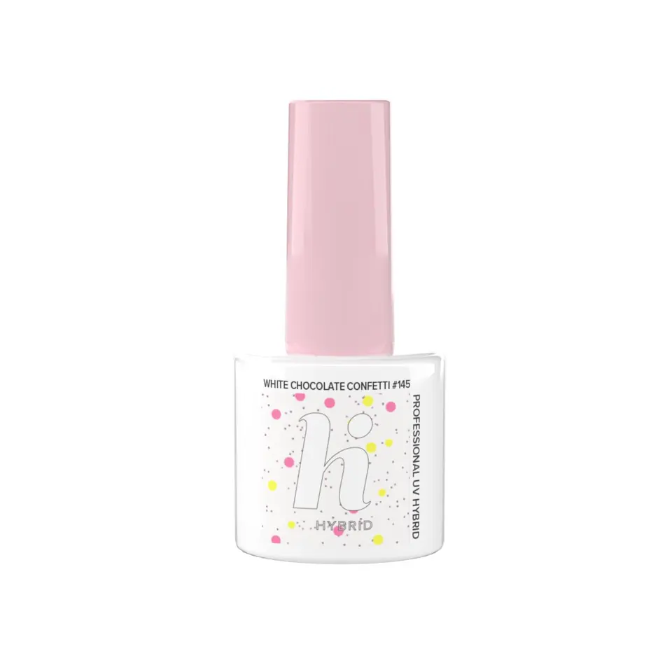 Are you ready for something really sweet? We suggest that the donut with white chocolate and colorful sprinkles be replaced with varnish #145 White Chocolate Confetti. This is a real sweetener in our collection. A milky white shade with cute confetti in purple, yellow and pink will sweeten any stylization. Bet on real madness and combine it with other colors, it looks beautiful in the company of neon pink or lime. Will you be tempted?