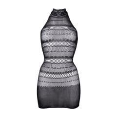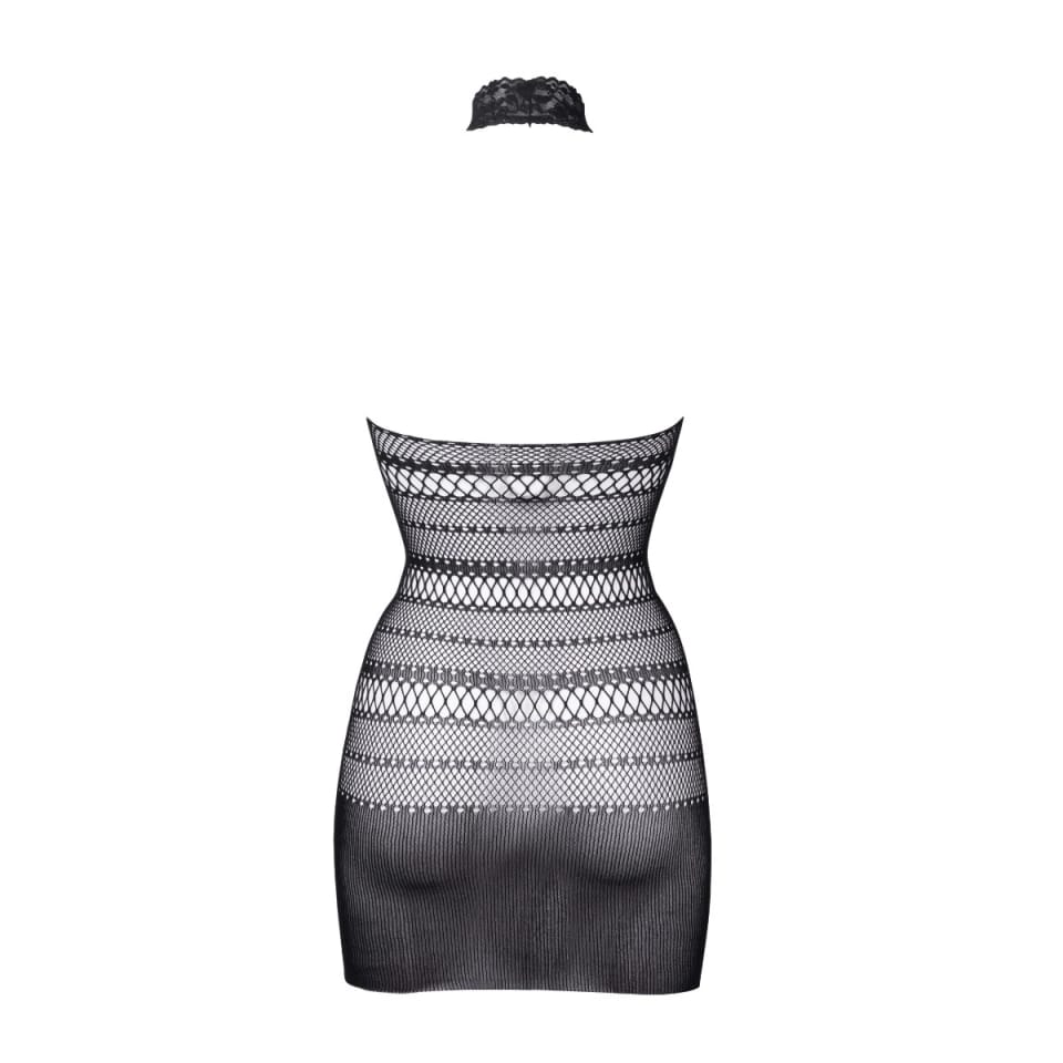 High Lace Neck Net Mini Dress Black O/S
