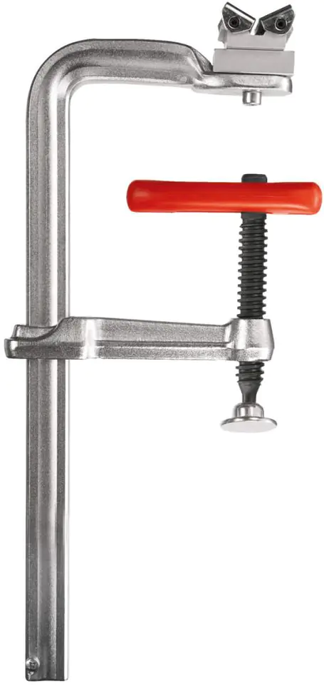 Execution: all parts of this clamp as well as pressure plates are made of special heat treated steel. The Vario clamp attachments adapt to round, oval and rectangular workpieces with an internal angle of 60° and an external angle of 60°. Easy change from compression to expansion. Possibility to release the safety to change the position of the mobile arm. No tools are required to replace the pressure plate. Handle with pin with plastic cap.