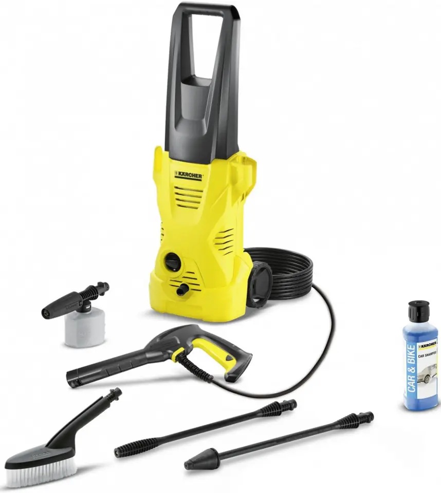 The device is ideal for small work around the house and in the garden. It can also be used as a second, handy device, used when we have to quickly remove small stains from small areas such as garden furniture, tools or a bicycle. Then, when it is much more convenient to reach for a compact model. This set is ideal for keeping clean around the house and washing vehicles. It consists of a foam lance, a brush and concentrated car shampoo in a folding corps. The equipment also includes a 4 m high-pressure hose, a single-jet lance and a rotary nozzle.