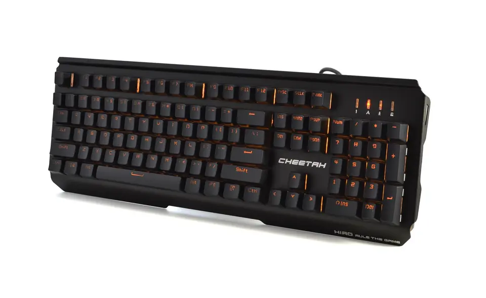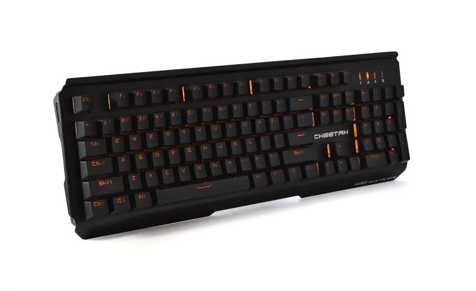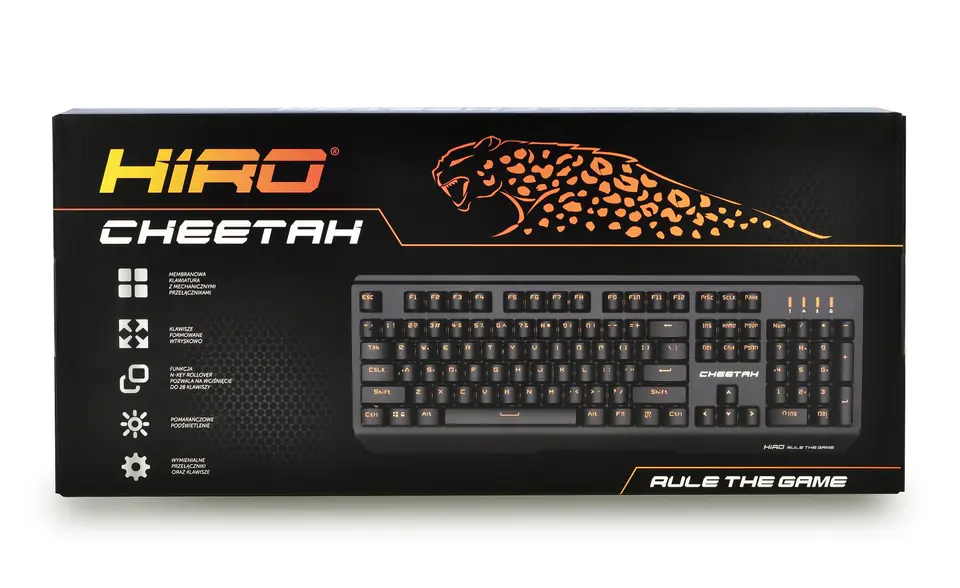 HIRO® CHEETAH is a membrane keyboard with mechanical switches with orange backlight. Replaceable, easily removable switches and keys allow for hassle-free repairs and changes. It has N-Key Rollover and Anti-Ghosting functions that guarantee satisfaction for every player. A special aluminum alloy used in aviation ensures unprecedented wear resistance of the product. The keyboard is designed to resist splashes. Choose HIRO® CHEETAH and get the upper hand in the game!