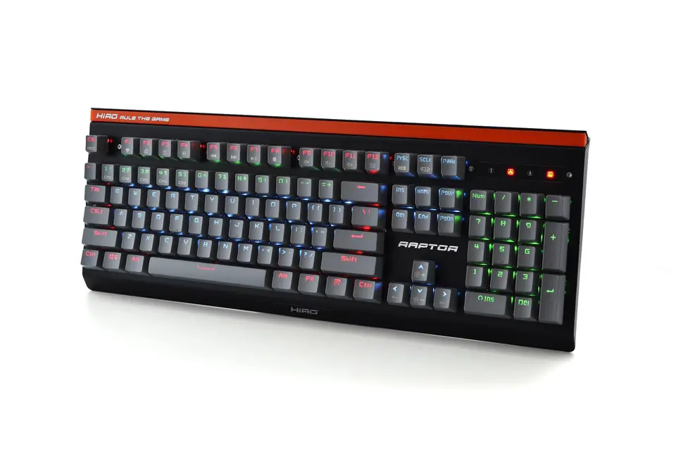 HIRO® RAPTOR is a professional mechanical keyboard with replaceable, easily removable switches and keys allowing for trouble-free repairs and changes. Optical switches ensure the fastest possible data transmission. Choose from 13 lighting effects in three different color sections. Press FN + Print key combination to program your own backlight mode N-Key Rollover and Anti-Ghosting ensure every gamer is satisfied. A special nano-coating guarantees resistance against spills. A special aluminum alloy used in aviation ensures unprecedented wear resistance of the product. Choose HIRO® RAPTOR and become a winner!