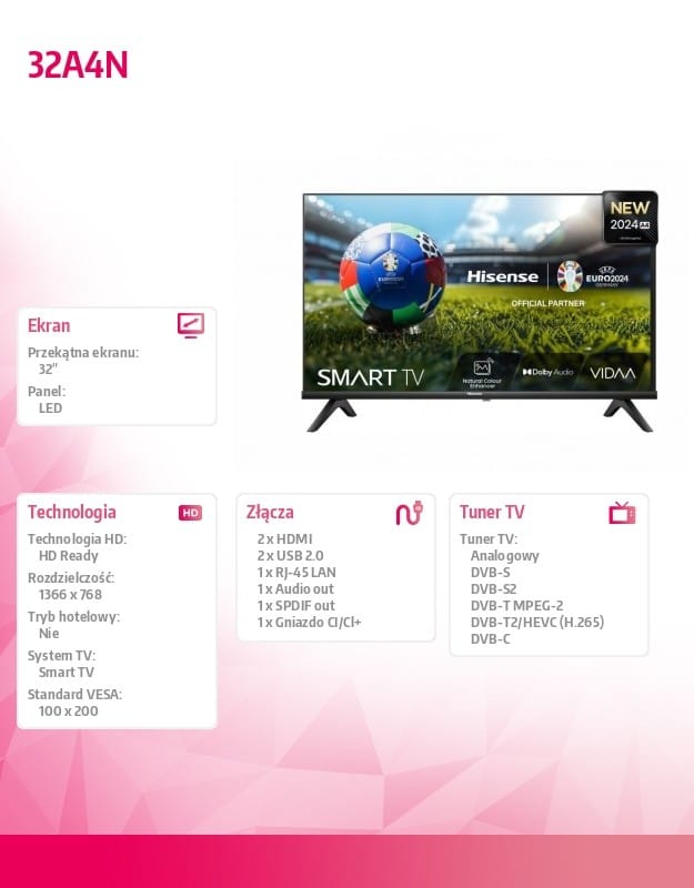 Hisense 32A4N TV 81.3 cm (32") HD Smart TV Wi-Fi Black 200 cd/m²