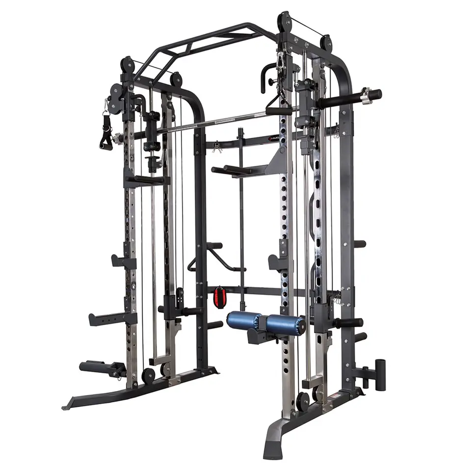 CYKLOP 1 SEMI COMMERCIAL Na każdej siłowni, w każdym klubie fitness znajduje się urządzenie cieszące się dużym zainteresowaniem. Urządzenie wspierające początkujących w ćwiczeniach, a zaawansowanym użytkownikom gwarantujące wiele możliwości urozmaicenia treningu. Mowa o Suwnicy Smitha. Jej początki sięgają lat 50-tych XX wieku. Konstrukcja Suwnicy Smitha wprowadza zupełnie nowe możliwości do treningu siłowego. Dzieje się tak przede wszystkim za sprawą zespolenia mechanizmu przesuwnego z gryfem oraz systemem asekuracji. Współczesne modele suwnicy Smitha są zazwyczaj wyposażane w dodatkowe elementy. Oznacza to, że decydując się na zakup suwnicy, możemy otrzymać urządzenie do kompleksowego treningu całego ciała. Takie kompleksowe urządzenie posiada w swojej ofercie marka HMS . Przedstawiamy suwnice o nazwie CYKLOP 1 HMS która jest stabilnym urządzeniem klasy Semi Commercial. Sprzęt idealnie nadaje się do użytku komercyjnego w małych klubach fitness a także w warunkach domowych. To urządzenie łączące klasyczną Suwnicę Smitha z wyciągami dzięki którym trening będzie wykonany w 100%. CYKLOP 1 gwarantuje całą gamę ćwiczeń na wszystkie grupy mięśniowe. Sztanga, drążek, dwa wyciągi z regulacją wysokości pozwolą wykonać olbrzymią ilość ćwiczeń. Ilość akcesoriów dołączonych do urządzenia gwarantuje zaangażowanie trenowanych mięśni pod różnym kątem dzięki temu w pełnym stopniu rozwiniemy mięśnie i wszystkie ich głowy mięśniowe . Dodatkowo akcesoria znacznie powiększają i urozmaicają listę ćwiczeń możliwych do wykonania. Każdy wykonywany ruch na suwnicy będzie bezpieczny dzięki wszystkim zabezpieczeniom i asekuracjom zamontowanym w urządzeniu. Suwnica posiada również wieszaki oraz specjalny uchwyt na wolną sztangę dzięki temu trening na wolnym ciężarze także jest możliwy . Konstrukcja CYKLOPA 1 idealnie nadaje się do współpracy z ławką. Ławka dostarczy mnóstwo dodatkowych możliwości wzbogacenia listy ćwiczeń możliwych do wykonania na suwnicy. CYKLOP 1 został wykonany z najwyższej jakości materiałów , gwarantujących bezpieczeństwo, stabilność i komfort podczas treningu. Suwnica jest bardzo cicha, a liniowe łożyska w jej mechanizmie gwarantują idealną płynność. Jego ergonomiczny kształt pozwoli optymalnie dobrać pozycje do ćwiczeń. Rolki wyciągów obracają się za ruchem ćwiczącego co daje ćwiczeniu jeszcze większą płynność i naturalność. Nie ma drugiej takiej maszyny na której można wykonać tak mnóstwo ćwiczeń na tak niewielkiej powierzchni. To rewolucyjne urządzenie spełni oczekiwania nawet najbardziej wymagających użytkowników. Przyrząd do kompleksowego ćwiczenia górnych i dolnych grup mięśniowych: Barki Klatka piersiowa Grzbiet Biceps Triceps Brzuch Prostownik grzbietu Pośladek Czworogłowy uda Dwugłowy uda Specyfikacja: Wymiary produktu: długość: 1990 mm szerokość: 1500 mm wysokość: 2200 mm Rama główna: 50x70x2mm Gryf: długość: 194 cm średnica: 31 mm waga: 20 kg Łożyska we wszystkich krążkach Łożyska liniowe w mechanizmie suwnicy Rodzaj obciążenia: talerze obciążeniowe (nie są dołączone do zestawu) Uchwyty do zawieszenia wolnych ciężarów o średnicy 50 i 25 mm Prowadnice gryfu z mechanizmem bezpieczeństwa Regulacja napięcia linek Asekuracja: 14 stopni Podpory na sztangę Możliwość treningu z ławką Wykończenie: malowanie proszkowe Maksymalne obciążenie wyciągu 900 kg Maksymalna waga użytkownika: 160 kg Waga produktu: netto: 139,5kg, brutto: 152kg Przyrządy do ćwiczeń: Suwnica Smitha Dwa wyciągi z regulowaną wysokością Drążek Wymiary kartonów: 1: 200 x 45 x 17 cm 2: 144 x 59,5 x 22 cm 3: 135 x 48,5 x 22 cm Wagi kartonów: 1: 58,5 kg 2: 56, 5 kg 3: 37 kg Lista akcesoriów: Prosty gryf podpinany pod dwa wyciągi x 1 Łamany gryf podpinany pod dwa wyciągi x 1 Metalowy pojedynczy uchwyt x 2 Materiałowy pojedynczy uchwyt x 2 Trójkątny uchwyt x 1 Sznur podwójny x 1 Sznur pojedynczy x 1 Podwójny uchwyt x 1 Opaska na kostkę x 1 Nakładka na gryf x 1 Uwagi: Semi Commercial Gwarancja 24 miesiące w przypadku użytku domowego Gwarancja 12 mięsięcy w przypadku użytku komercyjnego