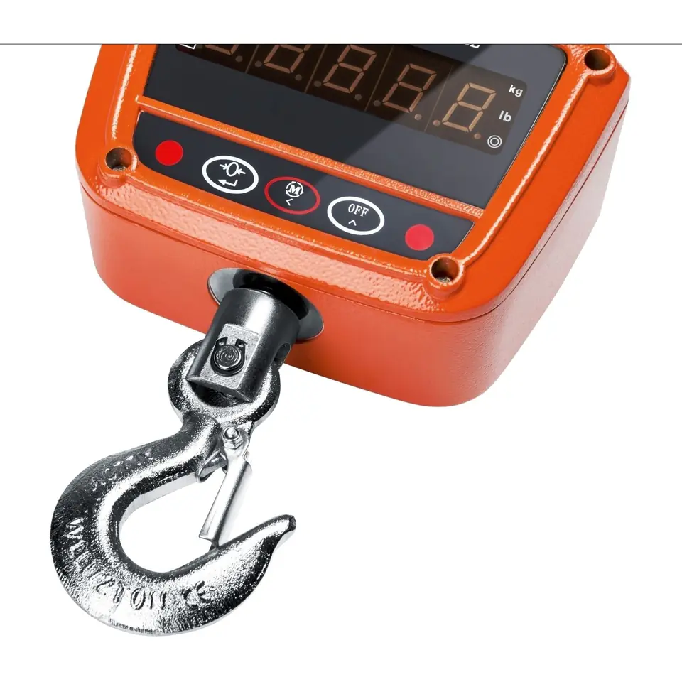 The carabiner and hook are made of galvanized steel, durable die-cast aluminum housing. The large easy-to-read display ensures comfortable operation from a long distance.
