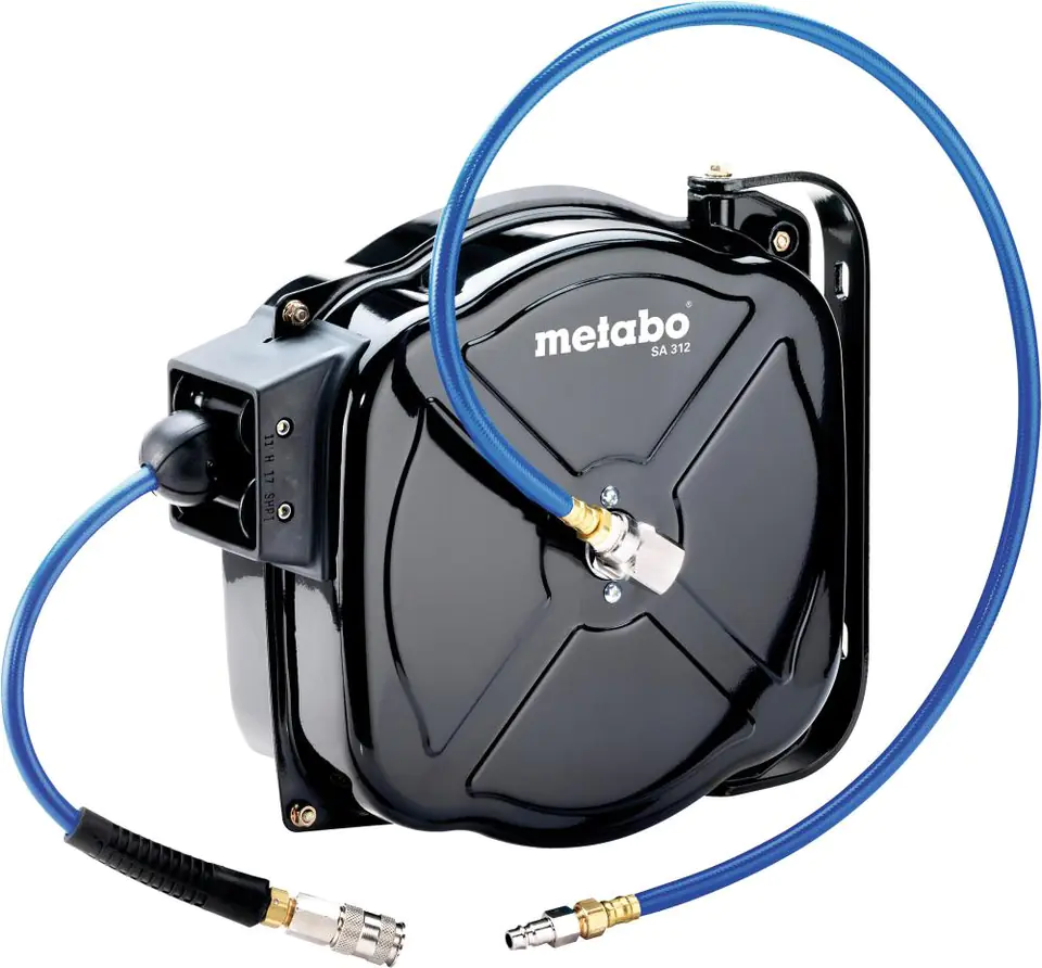 Design: compact, robust metal housing for wall and ceiling mounting. To lock or wind, the hose pull briefly. Supplied with polyurethane (PU) pressure hose with 1/4" quick coupling and 1/4" nipple nipple fitting.