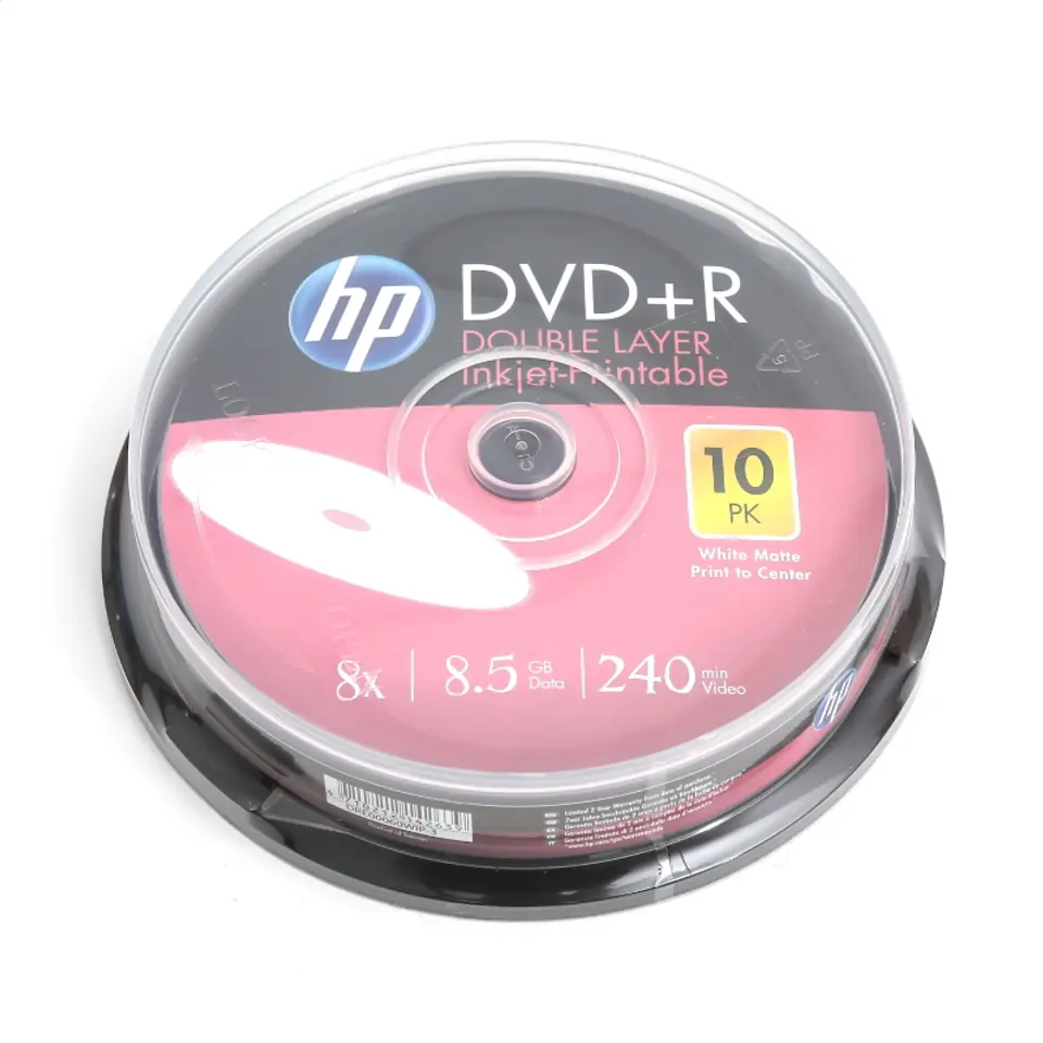 HP DL DVD+R 8.5GB 8X WHITE FF INKJET PRINTABLE CAKE*10 14263 / 69306