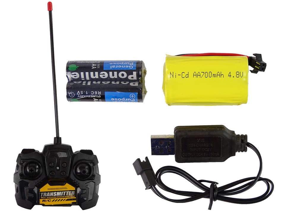 The remote control operating at 27 MHz allows the top of the crane to rotate and lower the rope to carry objects. The position of the hook on the crane arm is changed manually. The construction of the crane is made of easily clinging elements, making it easy to fold. It is necessary to pay attention that the rope is fixed straight and is not tangled.