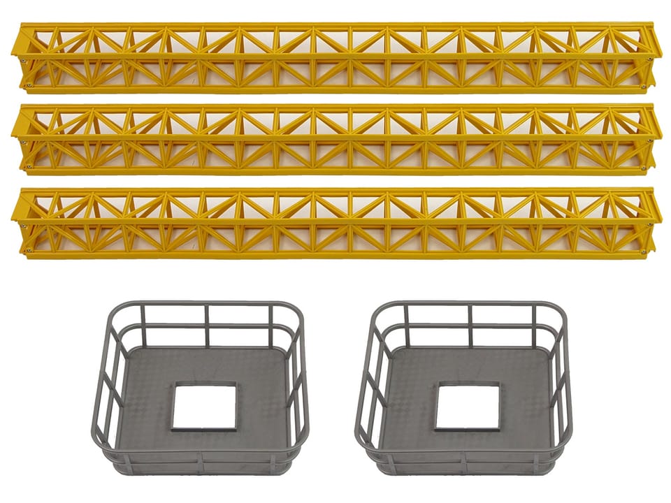 The set includes a crane with accessories and a controller to control the crane. The advantage of the crane is that the hook slides down and up and pulls in freely. At the end of the hook you can hook a bucket or platform with which you can transport smaller things from place to place.