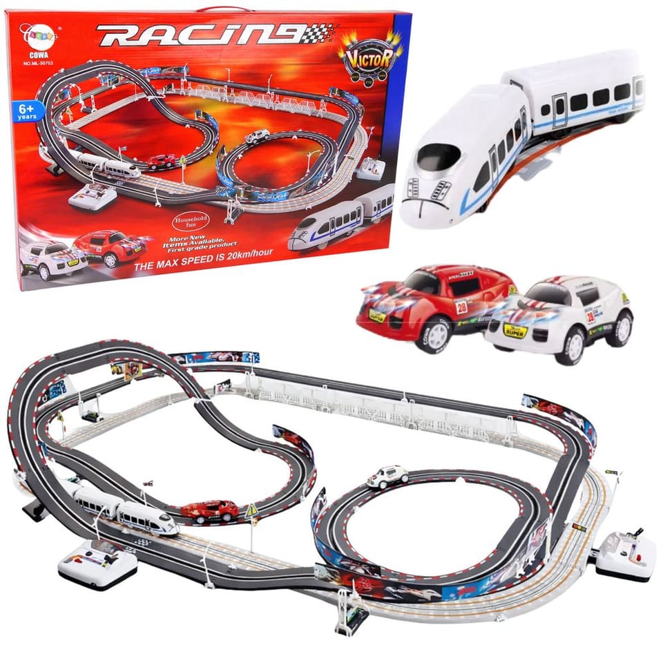 Cars can develop speeds of up to 20 km / h !! The set has 2 collision-free intersections and 2 loops. Thanks to this, the car and the cable car can move on their tracks without accidents.