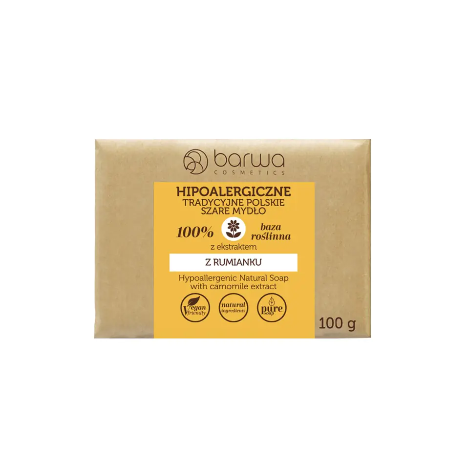 Traditional Polish Grey Soap is a natural and hypoallergenic product, created on a delicate plant basis. Thanks to the content of chamomile extract, it has a soothing effect and soothes sensitive and irritated skin. It does not contain artificial colors, fragrance composition and ingredients of animal origin.