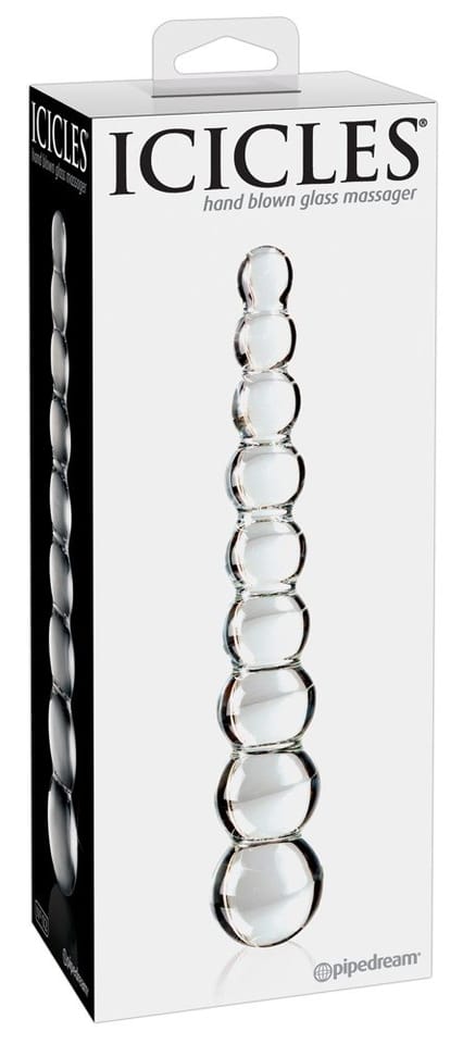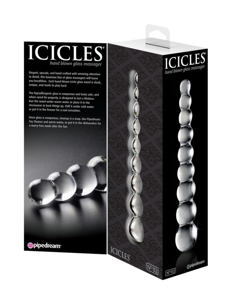 Elegant, upscale, and hand-crafted with amazing attention to detail, this luxurious line of glass massagers will leave you breathless. Each hand-blown Icicle glass wand is sleek, unique, and made to play hard. The hypoallergenic glass is nonporous and body safe, and when cared for properly, is designed to last a lifetime. Run the wand under warm water to heat things up, or chill it under cold water for a cool sensation. Use with plenty of Moist Body Lotion for an extra wet and wild experience! Cleanup is a snap after the fun with Pipedream Toy Cleaner and warm water.