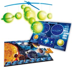 A kit to create a real model of the solar system! The package contains planets made of fluorescent plastic, thanks to which they glow in the dark, an arm to hang the planets, a large poster with constellations, a solar system puzzle and instructions.
