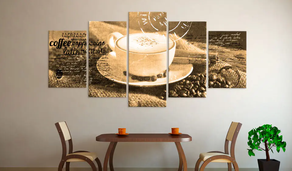 The high-quality painting "Image - Coffe, Espresso, Cappuccino, Latte machiato ... - sepia" is the result of the work of a talented team of designers - young artists, graphic designers and photographers with heads full of ideas. The image that interested you is a combination of the highest quality printing, careful manual work and the best quality materials.