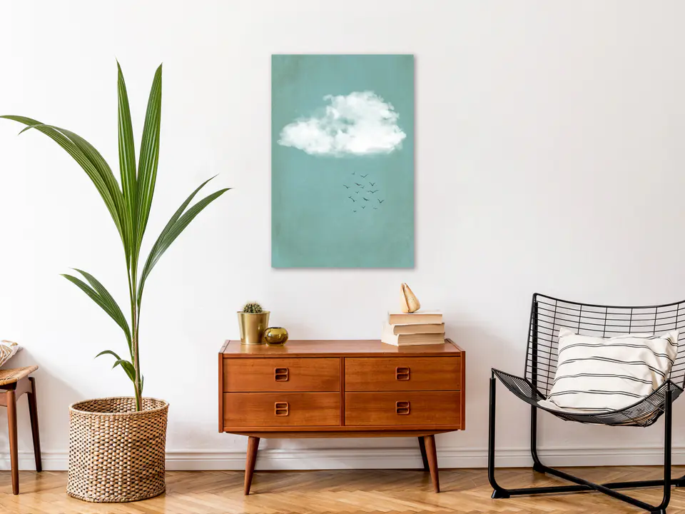 Image "Painting - Kumulus and birds (1-part) vertical" is printed on a special fleece canvas that perfectly reproduces colors. The canvas is stretched on a light but stable frame made of environmentally friendly materials. High-end decoration is provided by high-quality printing, thanks to which colors are expressive and details are perfectly reproduced, regardless of the image format.