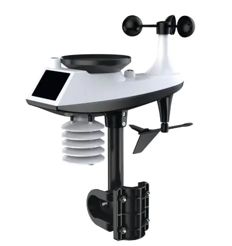 Functions: measurement of temperature, pressure and weather trend, alarm clock with snooze function, ice alarm, memory of maximum/minimum temperature and humidity values, memory of rainfall.