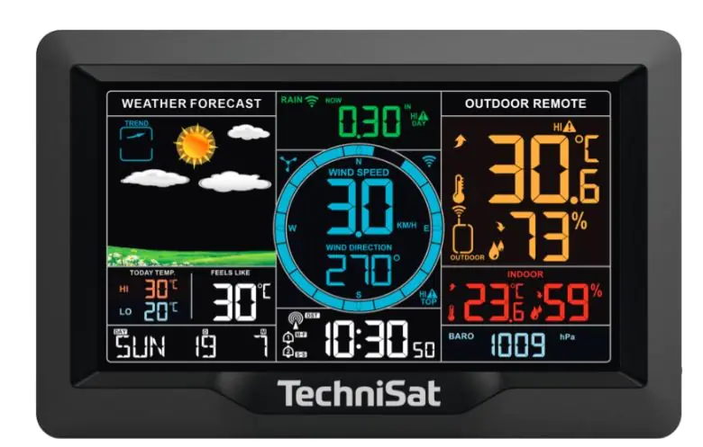 The IMETEO X6 is a state-of-the-art home meteorological station for accurate assessment of current and forecast weather conditions. It is equipped with a multisensor which measures temperature, humidity, wind speed and precipitation. The room climate is assessed using sensors built into the weather station.