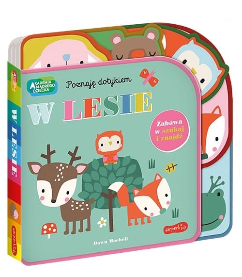 In the Forest is a new book from the series Poznaje Tkiem by Touch, Academy of the Wise Child. The book has felt pages, making it perfect for little hands - it is light and very colorful. Additionally, it has registers with images of forest animals, thanks to which you can easily turn the pages.