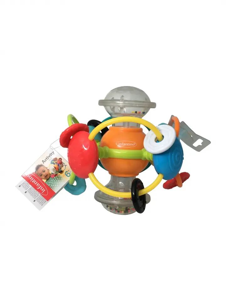 A rattle of teether with interesting flexible orbits. Playing with moving elements stimulates the child's senses.
