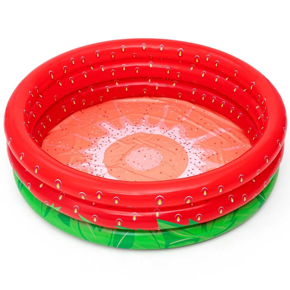 Inflatable pool with an interesting strawberry motif will provide your child with movement and play in the water. The pool has been designed to encourage children to move and have fun outdoors, thanks to its small dimensions it is ideal for children from 2 years of age. It is easy to inflate and empty so that storing it will not cause problems. Inflatable walls ensure comfort and safety of the youngest. Made of durable PVC material, it is resistant to damage.