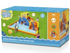 The Inflatable Water Park is a fun-filled inflatable space for climbing, descending, and exploring. Your child will be able to use the climbing wall to get to the tower with closed mesh walls. A large double slide, thanks to the water dispenser is slippery which facilitates the descent and adds extra fun Parents and children will love the large pool to cool off. With the built-in sprayer, you can aim and soak your friends. The inflatable playground can accommodate up to five players at the same time. It is made of double-stitched material that increases extensibility, strength and durability. The material provides resistance to wear and weather conditions. Can be drained quickly using the easily accessible built-in drain valve. This inflatable water park comes with its own storage bag, so all the fun can be easily packed for the next day.