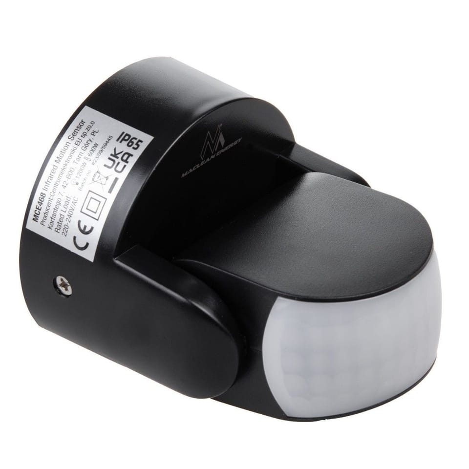 Maclean MCE468 B PIR Motion Sensor Infrared IP65 White Range 12m max load 600/1200W 180° Detection Angle Black