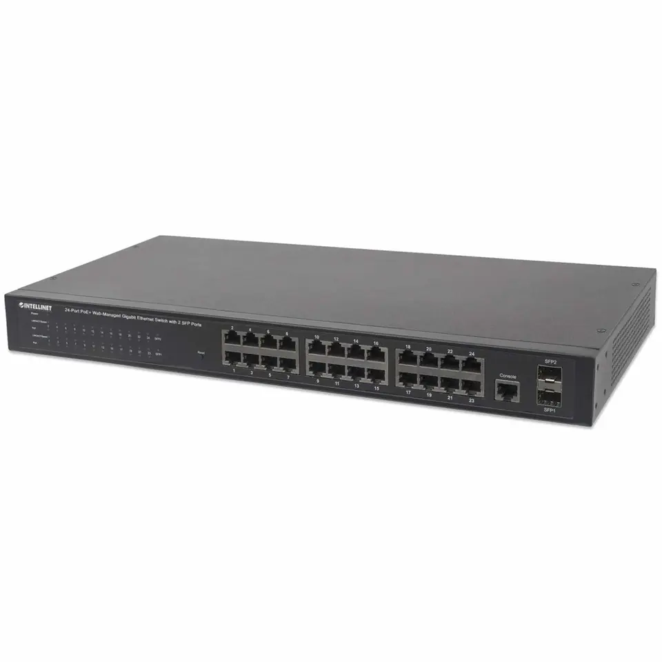 Intellinet 24-Port Gigabit Ethernet PoE+ Web-Managed Switch with 2 SFP Ports, 24 x PoE ports, IEEE 802.3at/af Power over Ethernet (PoE+/PoE), 2 x SFP, Endspan, 19" Rackmount