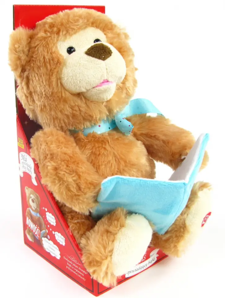 The bear, moving his head and mouth, tells 3 fairy tales in a nice voice: